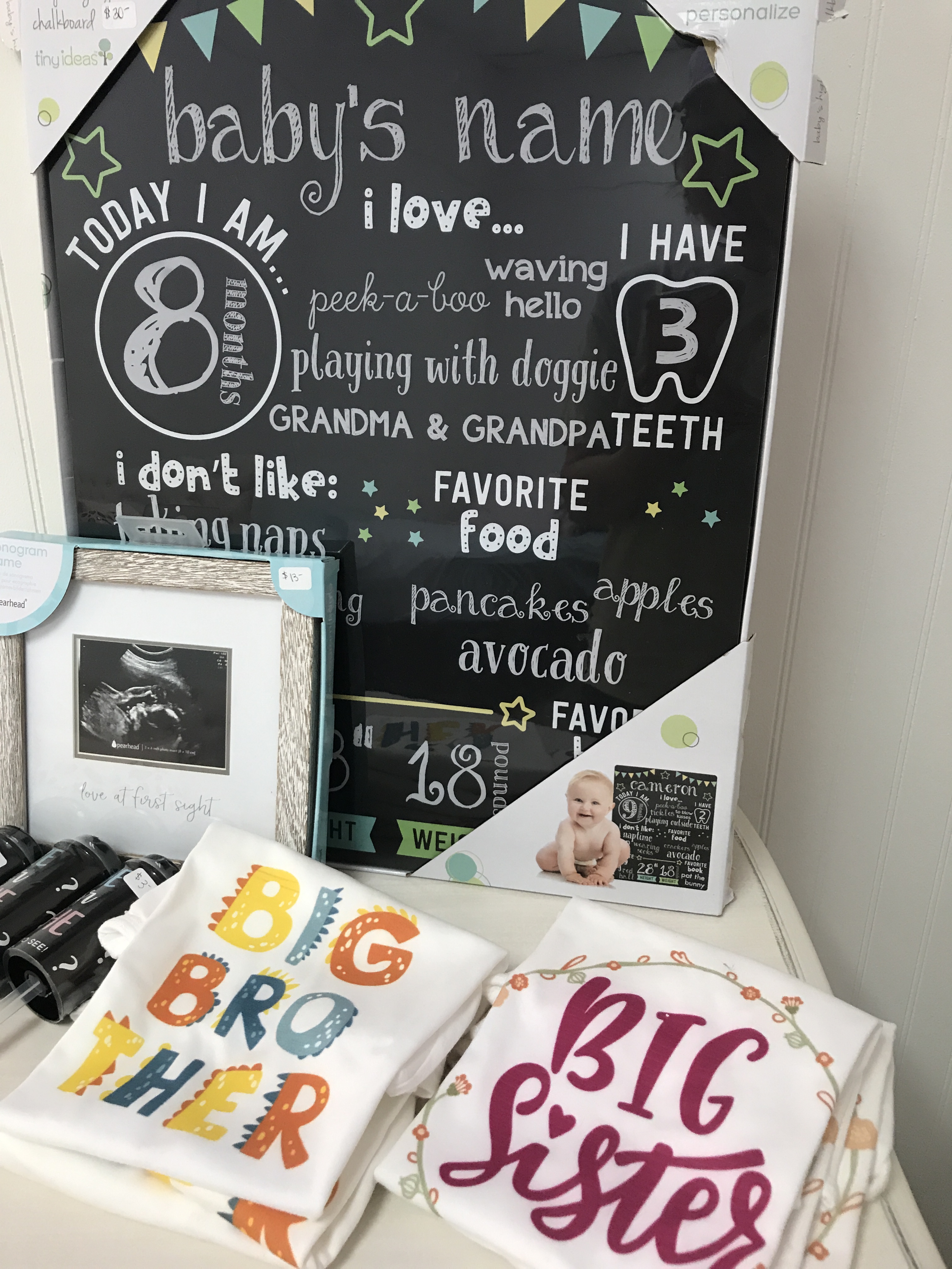 The First Glance boutique carries LaJenns Heirloom Clothing, gender reveal items and kits, picture frames, milestone blankets, handprint and footprint canvases, stroller caddies, Big Brother and Big Sister shirts, and an assortment of other baby supplies.